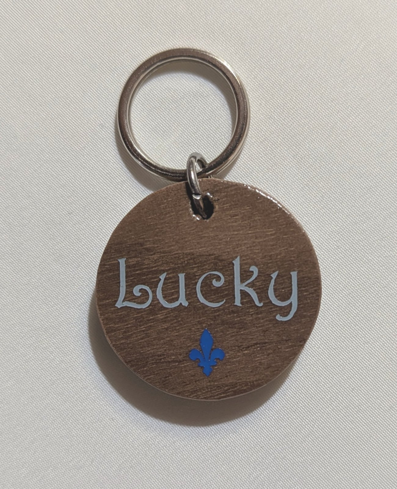 Au devant de la médaille, le nom du chien est tout d'abord mise en valeur au centre. On suggère une longueur maximale de 6 lettres pour une meilleure visibilité.